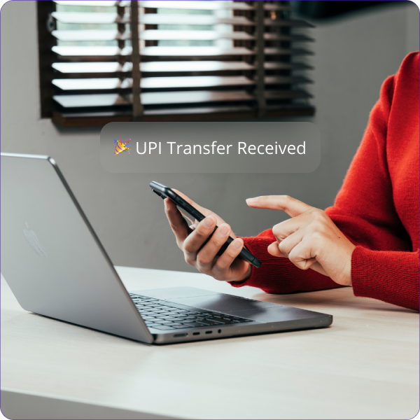 Customers either scan the QR code with their UPI app or initiate a bank transfer.